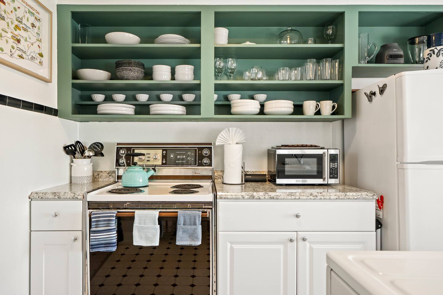 Friendly neighborhood! When walking toward the beach you'll likely get a smile, "hello," or happy dog looking for a scratch. Alki means "hope for the future" or "by and by". That attitude is reflected by the people of the area as it is known to be the friendliest part of Seattle. Alki is an historic neighborhood on the Puget Sound famous for its laid-back lifestyle and scenic views of the Puget Sound, the Cascade Range in the east, the Olympic Mountains in the west, and the iconic Seattle skyline. Seattle was founded by the Denny Party in 1851 and Alki was where they settled. If you walk along the water, you will see several monuments and landmarks telling the story. Top attractions include the Alki Beach Park with a golden stretch of sand, gentle waves for kayaking, and a waterfront walkway abuzz with bikers, Rollerbladers, joggers, and families soaking up the scenic views. The nearby Hamilton Viewpoint Park is a prime spot for a picnic with 180 degree views of the Seattle skyline and mountain ranges. Your West Seattle vacation home is only a few miles from Lincoln Park with 5 miles of walking trails, playgrounds and an outdoor heated saltwater pool (summers), and a short drive to the West Seattle Golf Course.