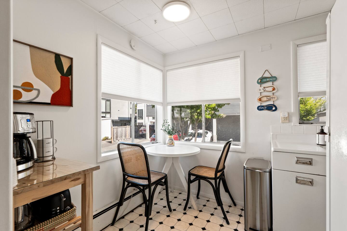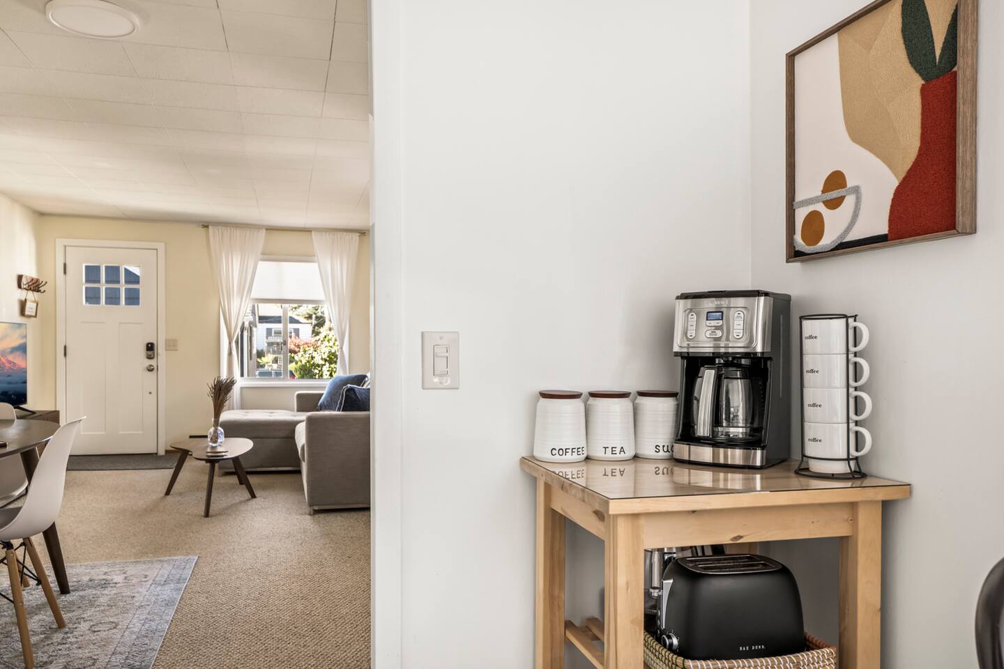 Living Room • Comfortable seating with sofa bed for additional guests • Roku 55” HDTV for streaming your favorite apps • Bright, relaxed space with a beach vibe to unwind after beach days Kitchen & Dining • Fully stocked kitchen with cookware, dishes, and essentials (basic spices, ZeroWater filter pitcher & more) • Coffee & tea bar for easy mornings at home — Auto drip coffee maker, ground coffee and Chemex pour-over • Dining space ideal for meals, games, or remote work Bedrooms (2) • Queen beds with comfortable medium firm mattresses and quality linens • Blackout curtains for restful sleep • Portable fans for Summertime comfort • Luggage racks • Calm, quiet space for restful sleep Bathroom • Clean, well-maintained full bathroom • Fresh towels and Public Goods products provided (body wash, shampoo & conditioner) • Full size bathtub & shower with wand-style showerhead Outdoor Space • Fully fenced yard with patio seating • Stainless steel gas BBQ grill • Beach chairs, towels & accessories provided Parking & Arrival • Rare two dedicated driveway parking spaces • Easy, stress-free arrival through self check-in including smartlock Connectivity & Comfort • Fast, reliable Wi-Fi for remote work or streaming • AC/heat split system, heating & fans throughout Family Amenities • Assorted board games • Child booster seat with tray for mealtime • Pack n Play crib with fitted sheet