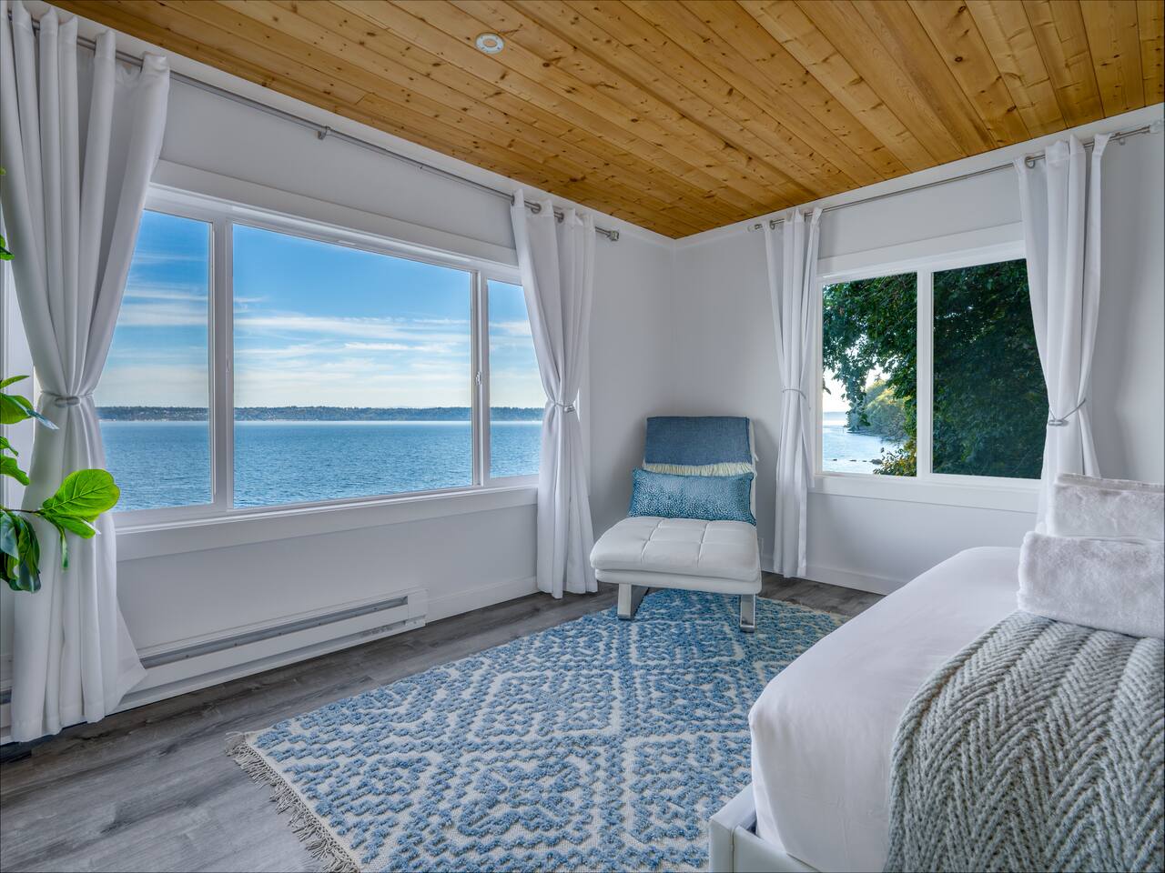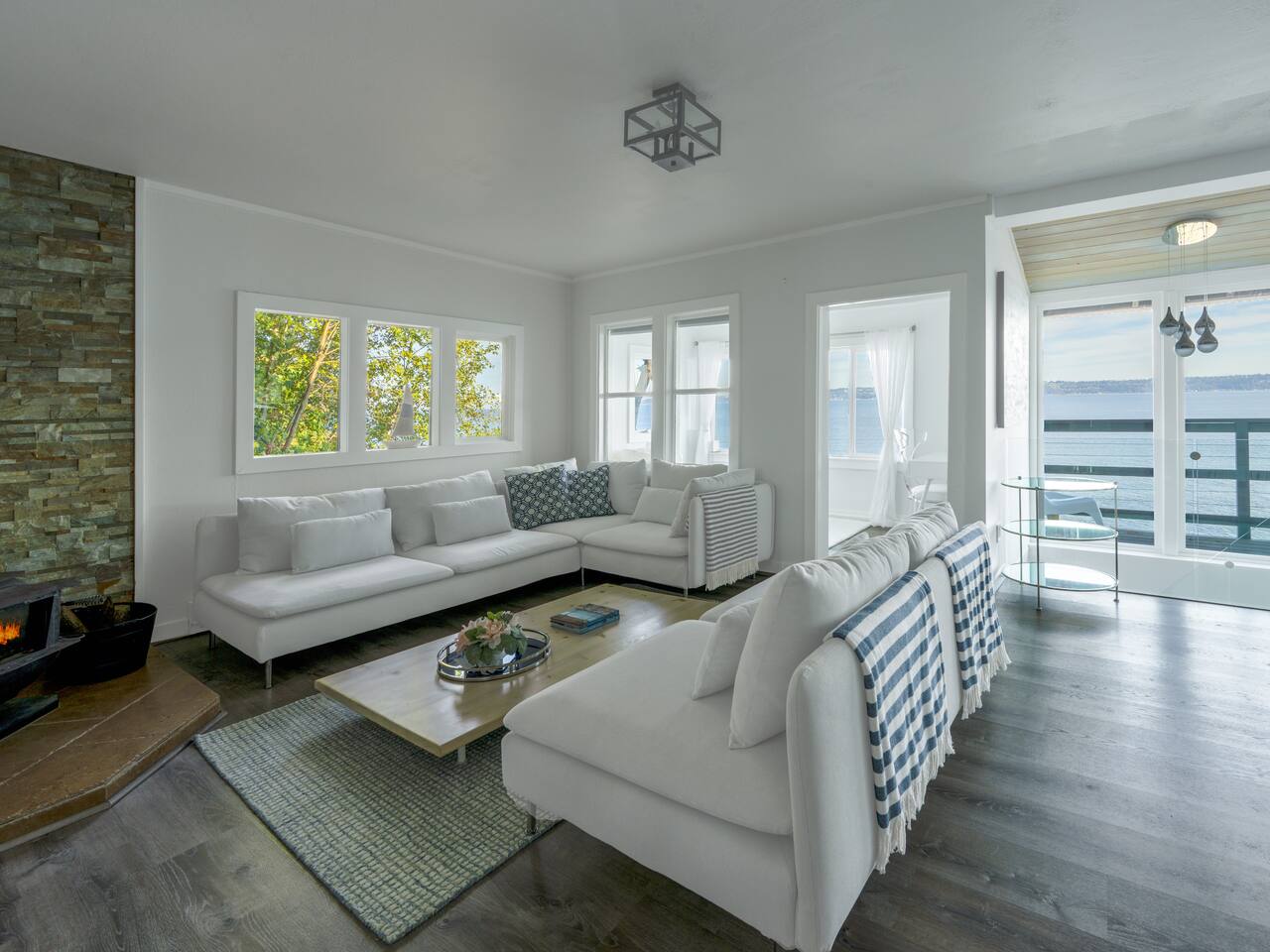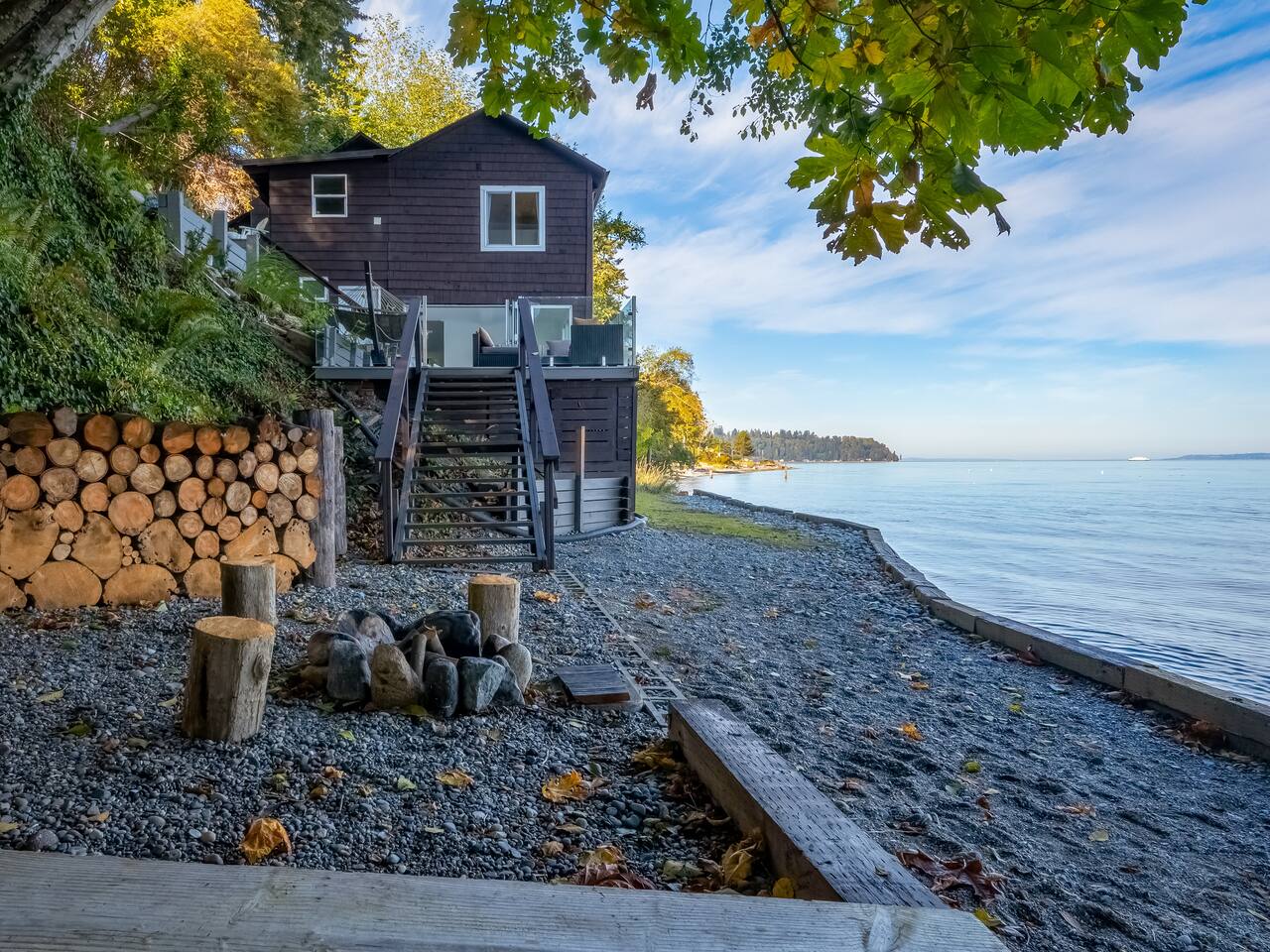 ⭐Arrival: Easy ferry ride from Seattle + clear directions; lit path and outdoor lighting guide you from parking to house. ⭐Outdoor Living: Expansive decks overlooking the sound; rock firepit & BBQ area perfect for sunsets and stories. ⭐Beach & Water Access: ~54 steps lead to private waterfront beach — ideal for tide pooling, kayaking, wildlife watching (bald eagles, otters, whales) ⭐Interior: Bright open living spaces with large windows, ocean views, and modern comfort. ⭐Kitchen & Dining: Well-equipped kitchen with island, dining area, Nespresso, pour-over, French press — cook and sip with a view. ⭐Bedrooms: Two queen bedrooms plus additional queen in the common area and flexible sleeping options (murphy & air bed). ⭐Bathrooms: Two full baths with heated floors and plush towels for post-beach comfort. ⭐Extras: Free Wi-Fi, washer/dryer, board games for family fun.