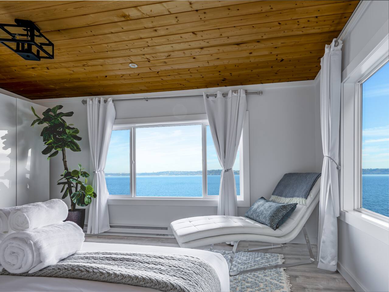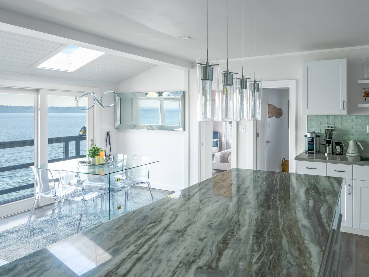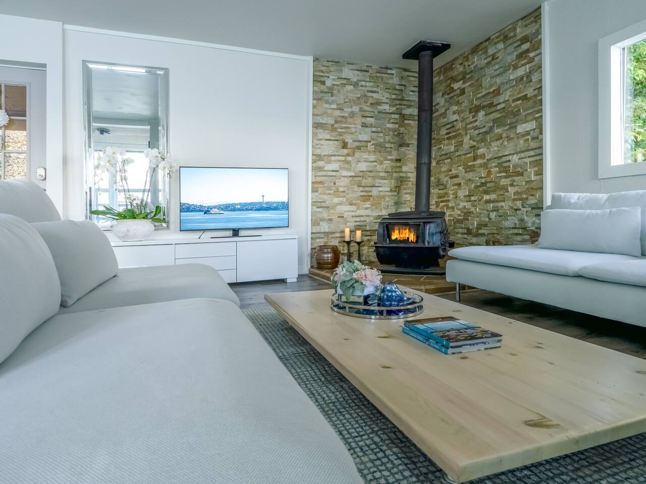 ⭐Arrival: Easy ferry ride from Seattle + clear directions; lit path and outdoor lighting guide you from parking to house. ⭐Outdoor Living: Expansive decks overlooking the sound; rock firepit & BBQ area perfect for sunsets and stories. ⭐Beach & Water Access: ~54 steps lead to private waterfront beach — ideal for tide pooling, kayaking, wildlife watching (bald eagles, otters, whales) ⭐Interior: Bright open living spaces with large windows, ocean views, and modern comfort. ⭐Kitchen & Dining: Well-equipped kitchen with island, dining area, Nespresso, pour-over, French press — cook and sip with a view. ⭐Bedrooms: Two queen bedrooms plus additional queen in the common area and flexible sleeping options (murphy & air bed). ⭐Bathrooms: Two full baths with heated floors and plush towels for post-beach comfort. ⭐Extras: Free Wi-Fi, washer/dryer, board games for family fun.