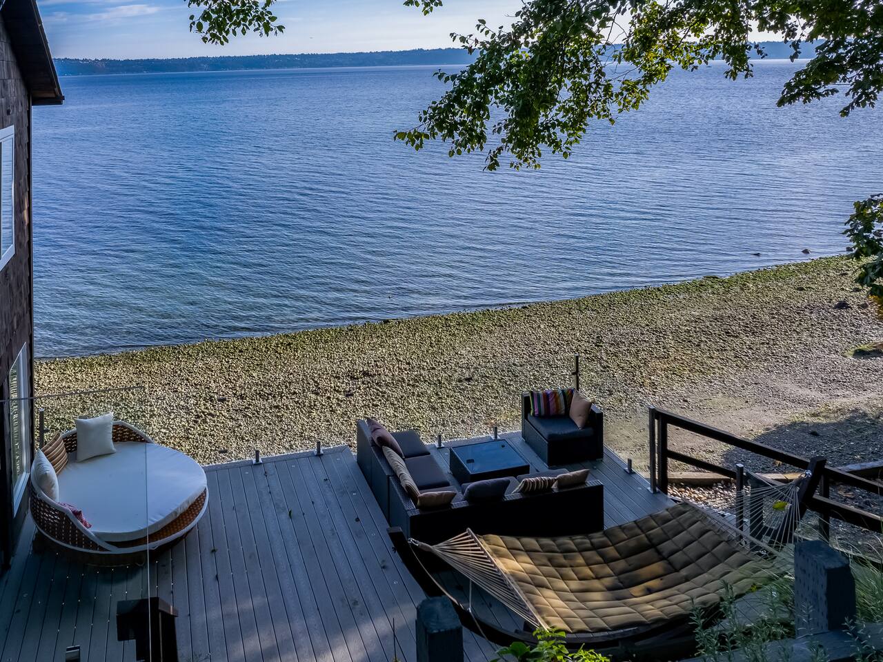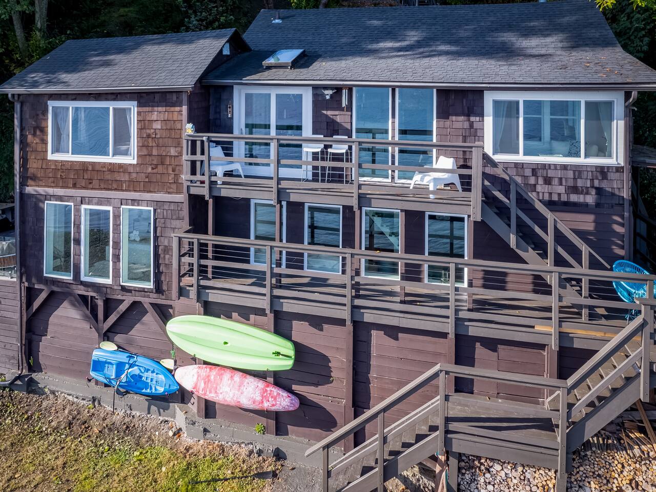 Oceanfront escape on Vashon Island with private beach access, multiple decks, and wildlife views — a peaceful Pacific Northwest retreat with big water views from sunrise to sunset. ⭐Quick ferry ride to FIFA stadium ⭐Private beach with water access ⭐Kayak & SUP included → effortless water fun ⭐Spacious decks & firepit → outdoor meals & evenings under stars ⭐Open living & light-filled interior → relax with water views ⭐Fully equipped kitchen + coffee gear → cozy mornings & joy at home